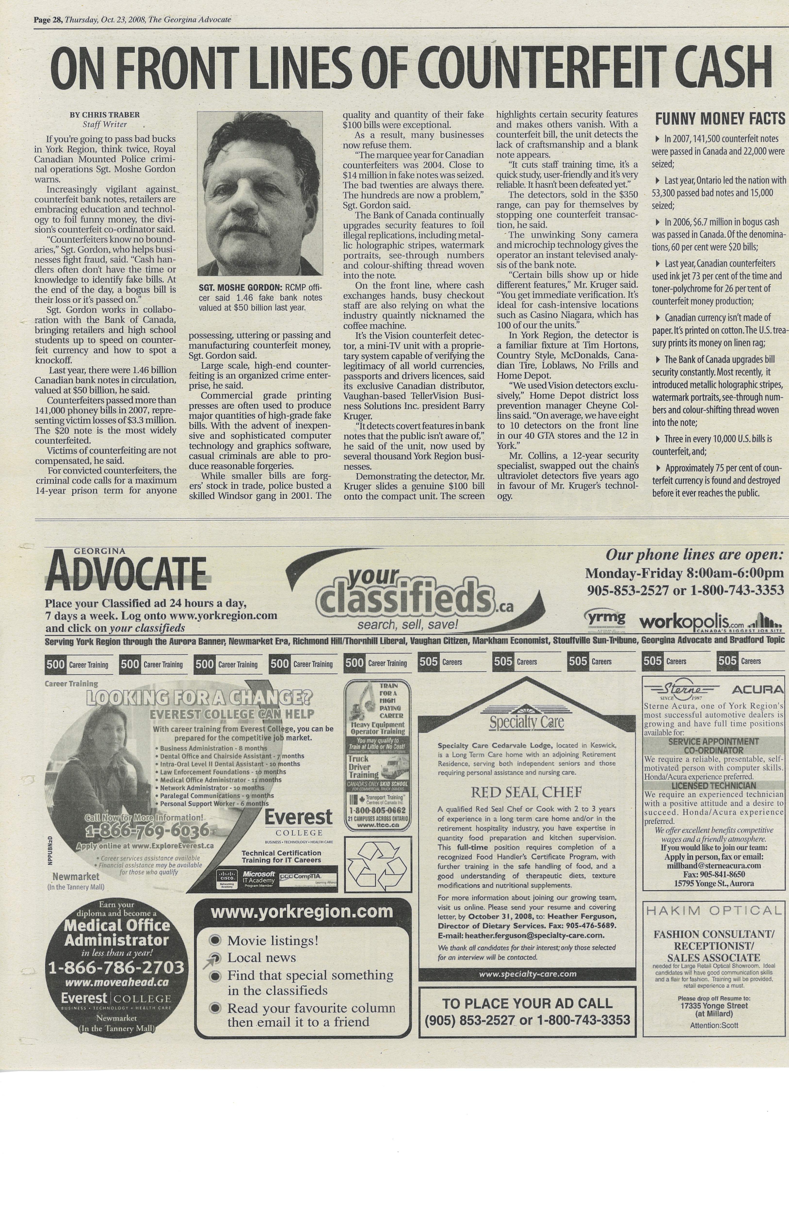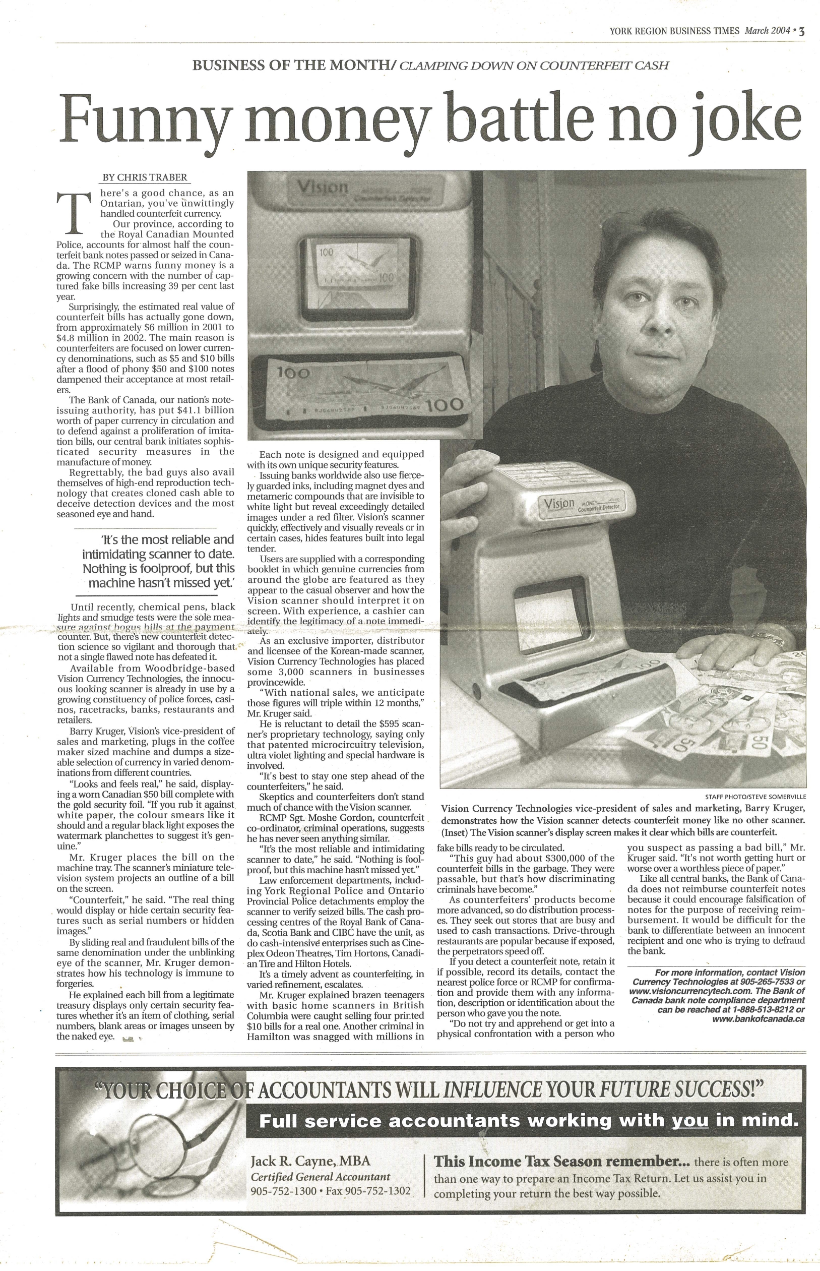 This experience led him to seek a more dependable solution. By combining his business background with emerging technology, Barry introduced advanced counterfeit detection machines to the Canadian market. He worked closely with local police and corporate organizations, demonstrating how technology could dramatically improve accuracy and reduce risk.