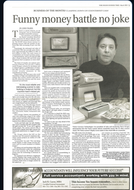 ...At the time, identifying counterfeit bills relied heavily on manual techniques such as touch, feel, and visual checks. Barry quickly realized how difficult it was to consistently train staff to accurately detect counterfeit money using these traditional methods.